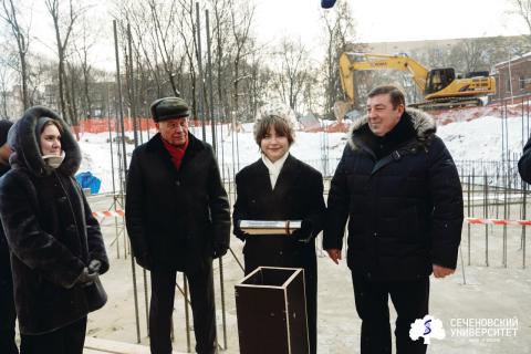 Ректор, студенты и ветераны Сеченовского Университета собрались на строительной площадке, чтобы заложить в фундамент нового студенческого дома капсулу времени с посланиями. В каждом послании отражено особое отношение к своей профессии как к служению, вдохновение и любовь. Хочется, чтобы в будущем служение людям, вдохновение от работы и любовь к жизни стали главными ценностями и способствовали научному прогрессу.