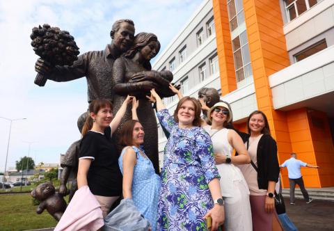 «Рождение ребёнка — самое великое чудо, которое дано увидеть и пережить человеку. Мы ждём в стенах этого комфортного, современного, просторного роддома всех будущих родителей, для которых регулярно проводим полезные занятия по подготовке к родам, рассказываем о ценности грудного вскармливания для малышей, поддерживаем отцов, готовых стать партнёром супруги в момент появления на свет их сына или дочки. Пусть эта замечательная скульптурная композиция служит наглядным символом единства родителей, которые совместно, в любви и гармонии, воспитывают детей, а также напомнит о преимуществах многодетности», — сказала заместитель главного врача Верхнепышминской ЦГКБ по акушерско-гинекологической помощи Лариса Кадочникова.