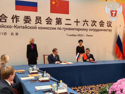 Министр здравоохранения РФ Михаил Мурашко выступил на XXVI заседании Российско-Китайской комиссии по гуманитарному сотрудничеству. Заседание прошло под сопредседательством заместителя Председателя Правительства Российской Федерации Татьяны Голиковой и члена Государственного совета Китайской Народной Республики Шэнь Ицинь. В ходе заседания министр представил доклад о развитии сотрудничества России и КНР в сфере здравоохранения, а также принял участие в церемонии подписания Протокола 25-го заседания Подкомиссии России и КНР по сотрудничеству в области здравоохранения.